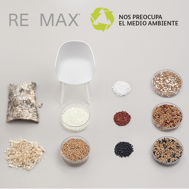 El polipropileno regenerado proviene de desechos de producción industrial generados principalmente por la industria alimentaria, médica y de artículos para el hogar. La madera utilizada también proviene de los desechos generados durante la producción de sillas, mesas y muebles en general. Las materias primas se almacenan en nuestros almacenes en una ubicación específica, esperando ser mezcladas en máquinas especializadas de acuerdo con las diferentes fórmulas RE MAX®.