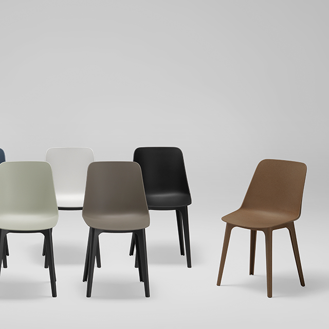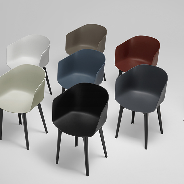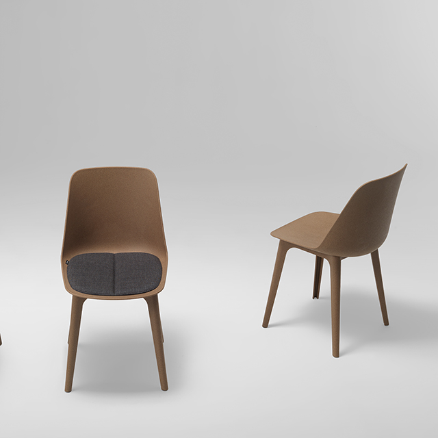 Asiento Monocasco en polipropileno reciclado y reforzado con fibra de vidrio, obtenido por moldeo e inyección y coloreado en masa. Material completamente reciclable.